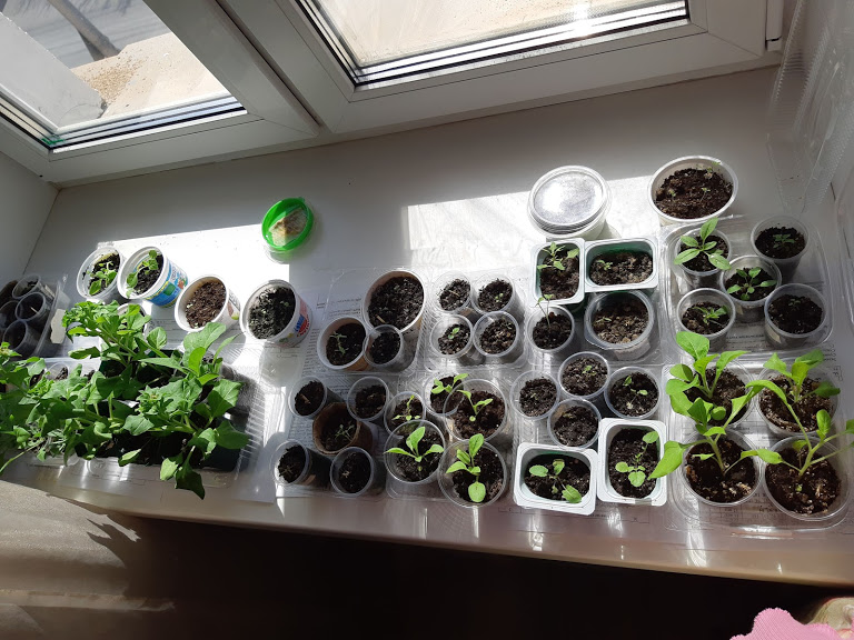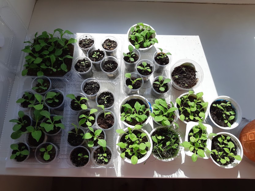 На фото пока только петуньи и те виолы и левкой, которые взошли. В этом году я купила много разных сортов петуний и стала выращивать. Что еще на карантине делать? У сортовых петуний в пакетика по 5-10 семян. Из которых мало что взошло.