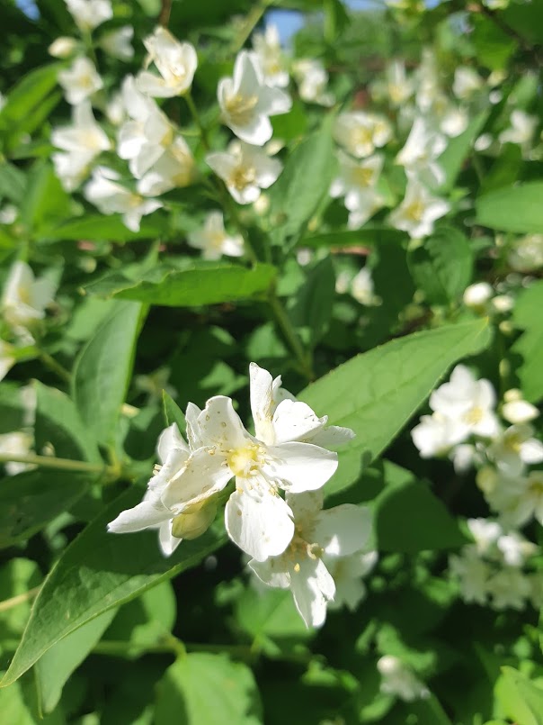 Жасмин, проходишь мимо - пахнет чаем с жасмином)). Жаль, что так быстро оцветает.